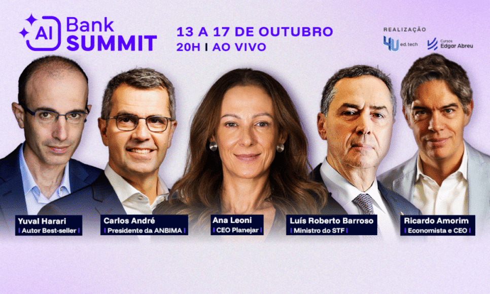 De 13 a 17 de outubro, a 4U EdTech e o Cursos Edgar Abreu promovem o AI Bank Summit 2025, um evento online abrangente dedicado à Inteligência Artificial aplicada ao setor financeiro. Durante cinco dias, especialistas nacionais e internacionais discutirão como a IA está transformando bancos, fintechs, investimentos e as carreiras relacionadas.
