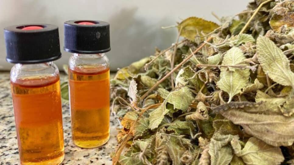 Após a colheita, as folhas devem ser secas à sombra, evitando a exposição direta ao sol, que compromete a qualidade do óleo. Estudos mostram que o uso de folhas secas proporciona um rendimento elevado, com produção entre 3 e 5 mililitros de óleo essencial para cada 100 gramas de folhas secas – um índice considerado excelente.
