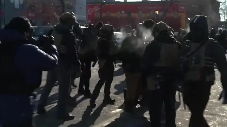 A equipe de reportagem da CNN relatou uma situação de grave desordem nas ruas de Minneapolis. A reportagem descreveu a presença de densas nuvens de gás lacrimogêneo, gerando uma reação imediata entre os manifestantes.