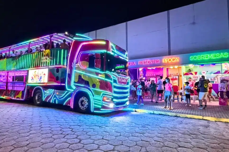 O novo ponto fixo da Carreta da Alegria, inaugurado na última semana de dezembro, funciona como uma extensão do passeio. Localizado em Guaratuba, reúne bilheteria, embarque e desembarque, loja Mundo Doce e uma área de produtos licenciados, como copos, camisetas e miniaturas iluminadas.