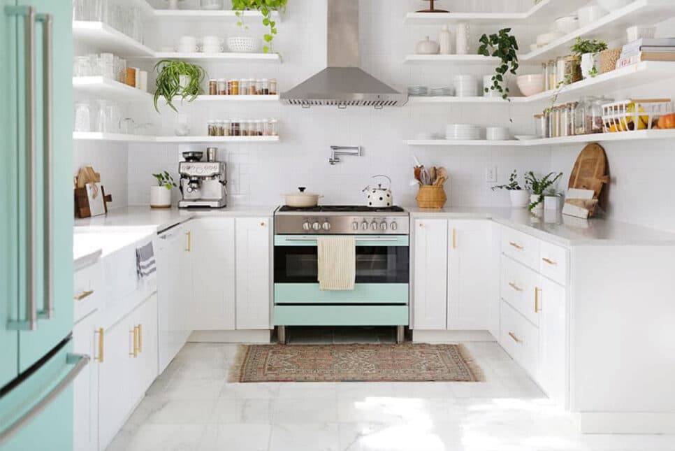 5. Organização como Protagonista: Com a ausência de armários tradicionais, a organização se torna ainda mais importante. Mantenha utensílios e objetos expostos de forma organizada e funcional.