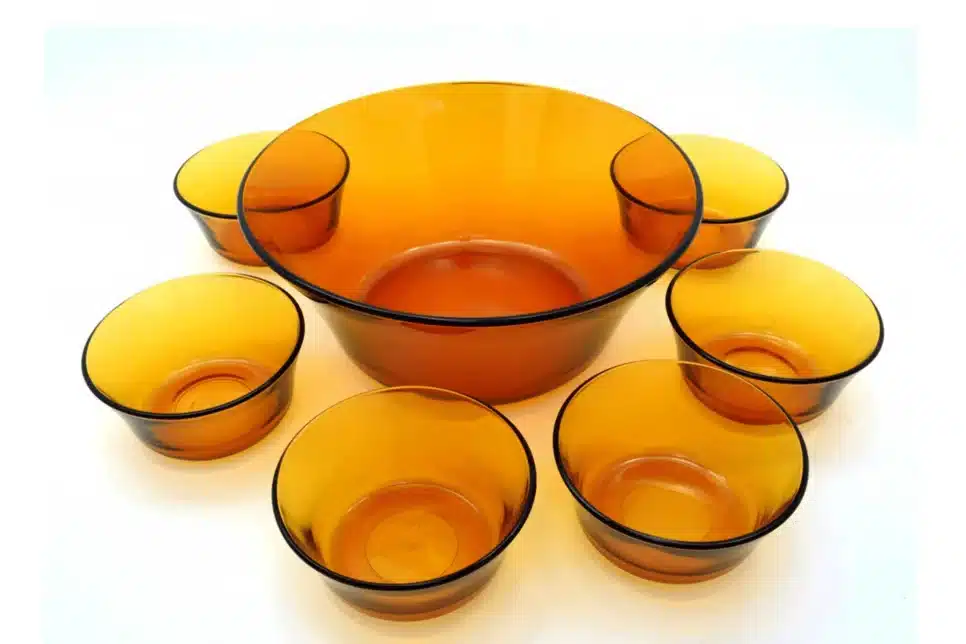 A importação da Duralex para o Brasil começou nos anos 1950, mas a explosão de popularidade ocorreu décadas depois, quando a marca passou a ser fabricada por aqui. A linha âmbar – pratos, copos e xícaras de vidro marrom – se tornou uma referência de durabilidade e presença garantida nas cozinhas da classe média.