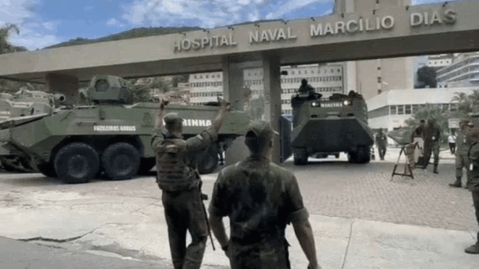 O Ministério da Defesa informou, na terça-feira (28.out.2025), que “naquele momento, a Marinha posicionou veículos blindados no perímetro do hospital, respeitando o limite legal de 1.400 metros em torno de instalações militares, medida voltada à segurança da área e dos militares”.