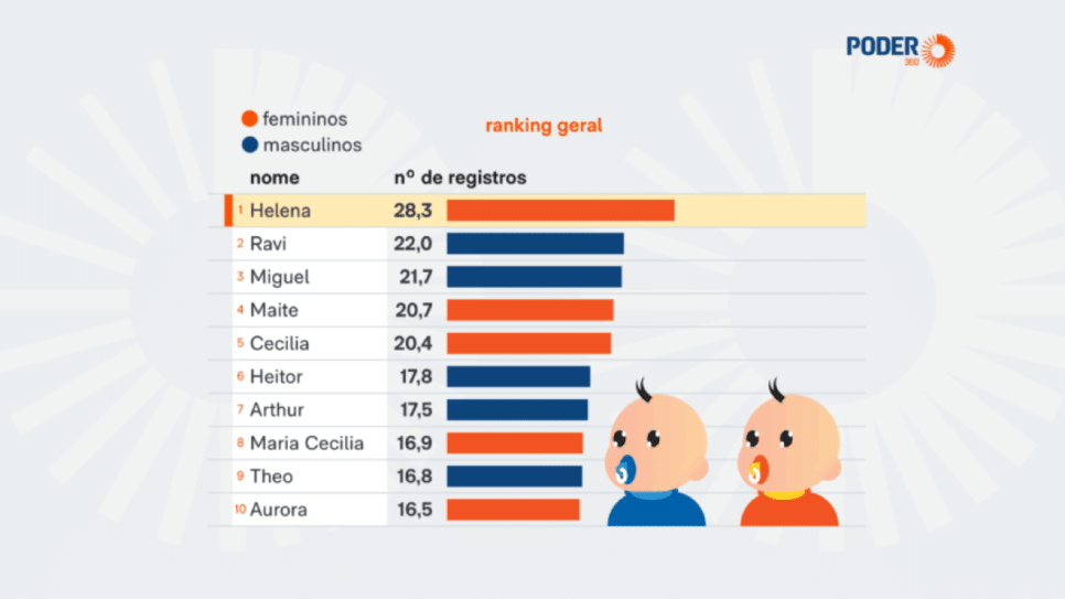 No segmento masculino, Ravi apresentou um aumento significativo, avançando quatro posições em relação a 2024, superando Miguel, que liderou o ranking no ano anterior. O IBGE (Instituto Brasileiro de Geografia e Estatística) revelou que Maria e José são os nomes mais escolhidos entre os brasileiros em novembro.