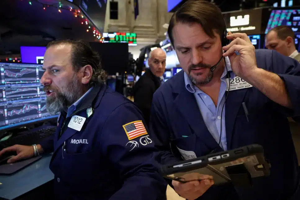 Os principais índices acionários dos Estados Unidos apresentaram desempenho negativo nesta terça-feira (13). Por volta das 12h40, horário de Brasília, o Dow Jones registrava uma queda de 0,71%, situando-se em 49.239 pontos. O S&P 500 cedia 0,28%, atingindo 6.957 pontos, enquanto o Nasdaq descia 0,36%, para 23.649 pontos.