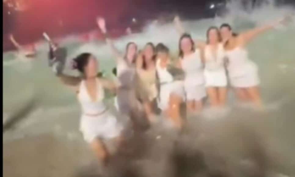 Um vídeo viralizou nas redes sociais, mostrando um grupo de sete amigas que tentava registrar a queima de fogos do Réveillon no Rio de Janeiro, de costas para a água. A situação inusitada foi interrompida por uma onda que surpreendeu o grupo, arrastando-o.