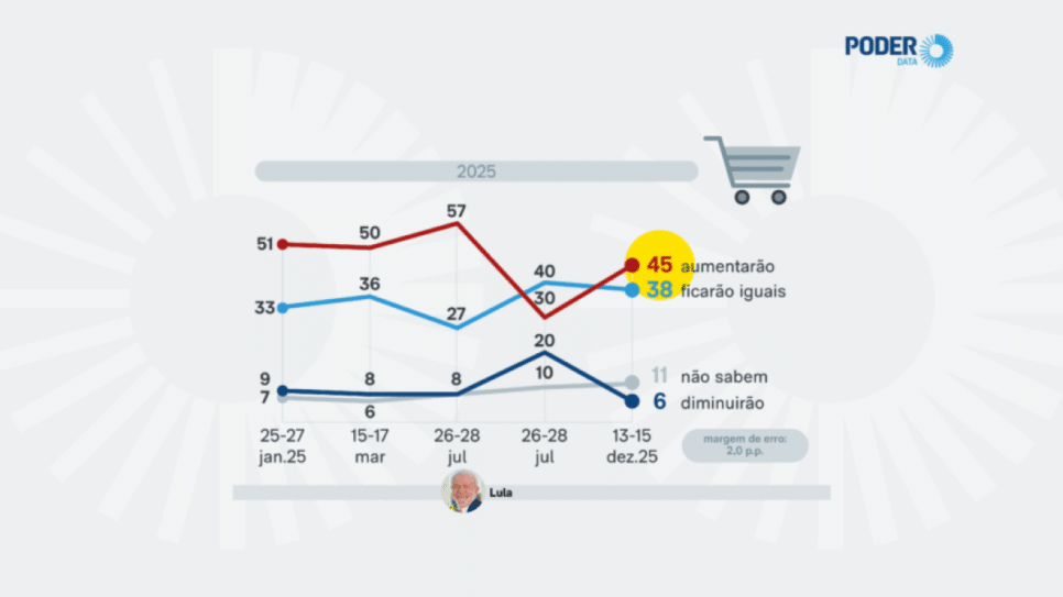 Uma pesquisa recente do PoderData, realizada entre 13 e 15 de dezembro de 2025, revelou mudanças significativas na percepção dos brasileiros sobre a inflação e a economia. Os dados indicam uma queda na expectativa de que os preços das compras no mercado e das contas aumentem nas próximas semanas, com apenas 6% dos entrevistados projetando uma alta.
