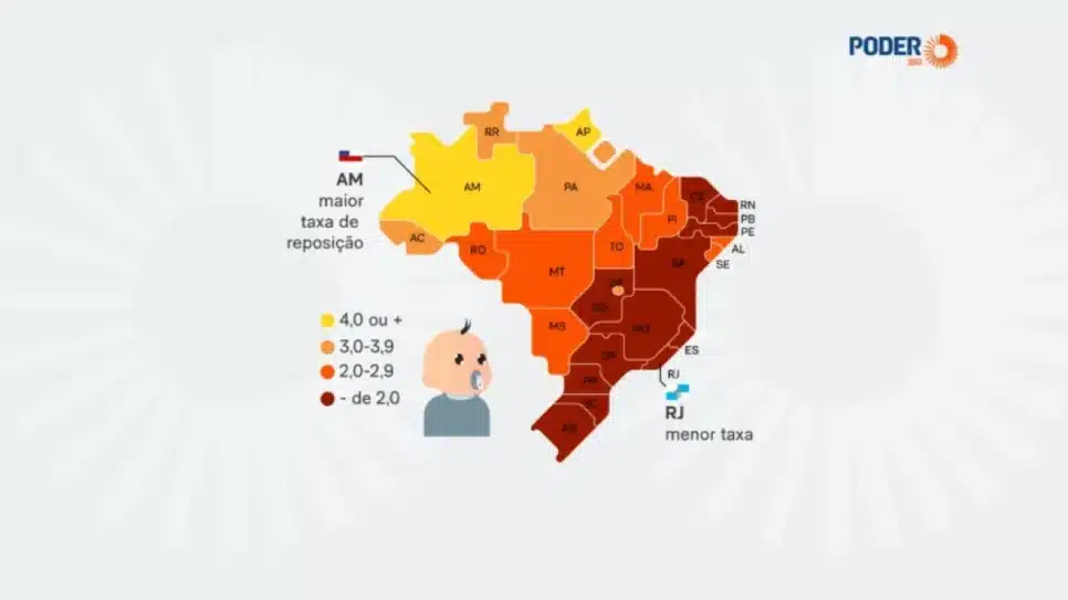 O Rio Grande do Sul ocupou a segunda posição com 1,2 nascidos por morte. Em contraste, o Amazonas e o Amapá lideraram a lista com as maiores taxas de reposição, alcançando 4,1 e 4,0 nascidos por morte, respectivamente. Esses números indicam um crescimento populacional mais robusto nessas regiões.