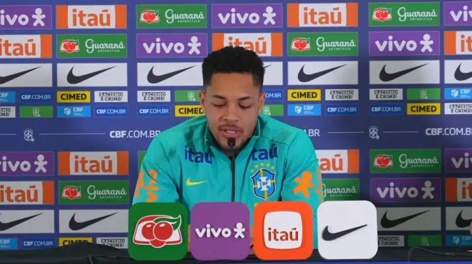 O atacante Vitor Roque, do Palmeiras, concedeu entrevista na coletiva da Seleção Brasileira nesta quinta-feira (13). O momento foi para esclarecer a controvérsia em torno de uma publicação recente em seu Instagram, feita após a vitória do time contra o São Paulo no clássico do Brasileirão, ocorrido em 5 de outubro.